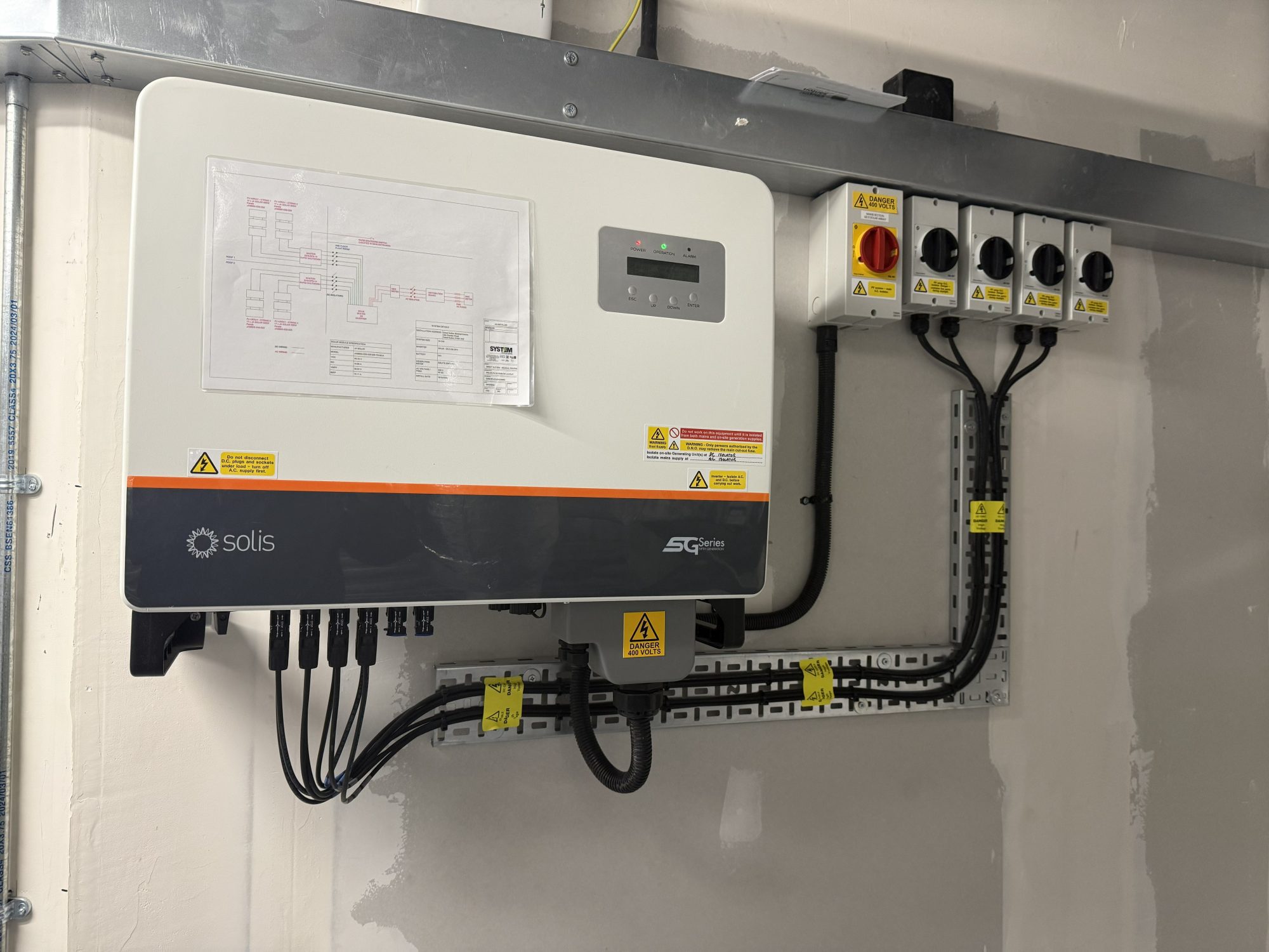 • Layout: System split across two roof areas to optimise available space and generation profile